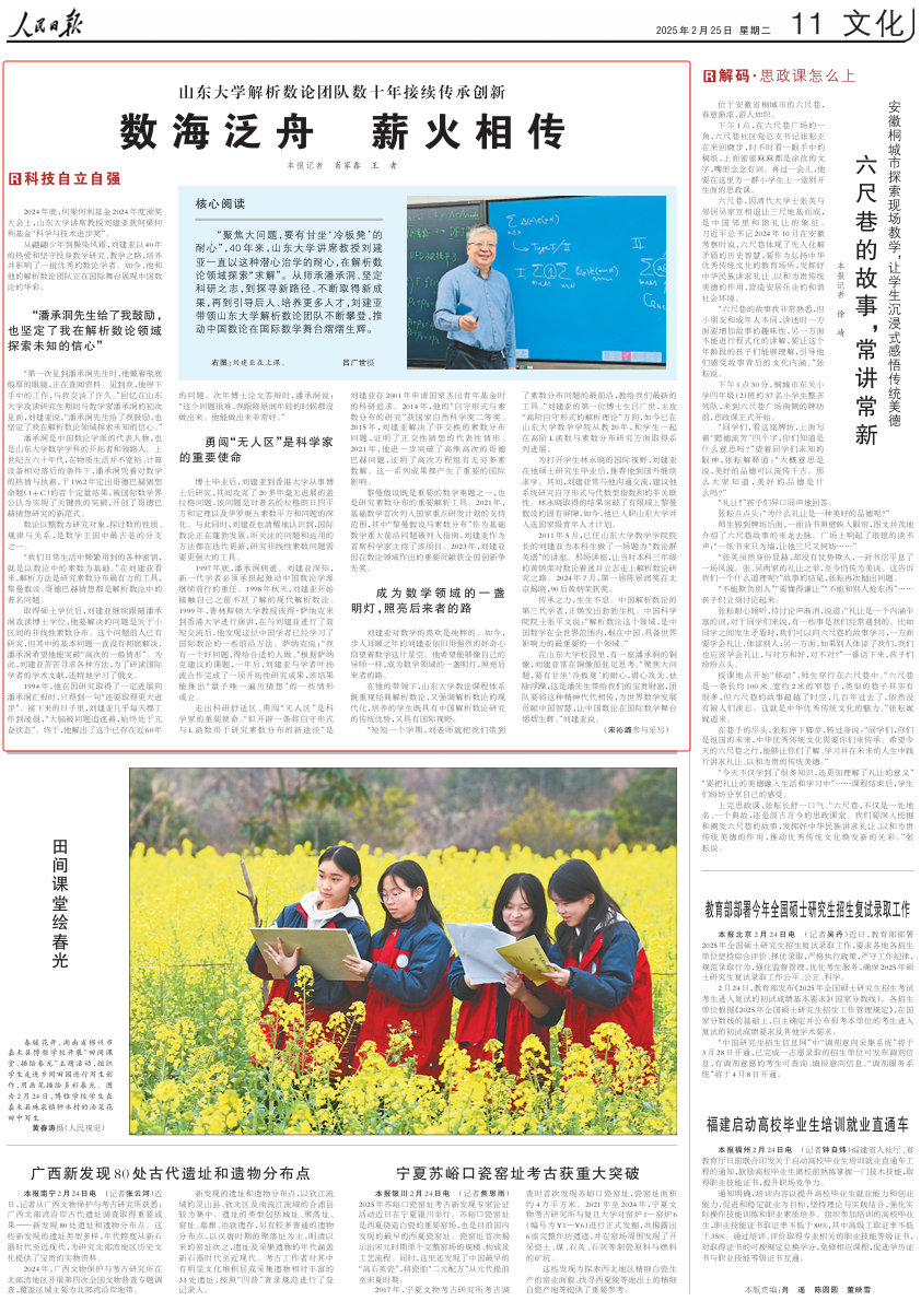 2011年5月,已任山东大学数学学院院长的刘建亚为本科生做了一场题为“数论群英谱”的讲座。那场讲座,让当时本科三年级的黄炳荣对数论着迷并立志走上解析数论研究之路。2024年7月,第一届陈景润奖在北京揭晓,90后黄炳荣获奖。